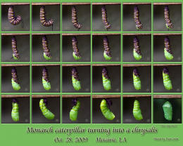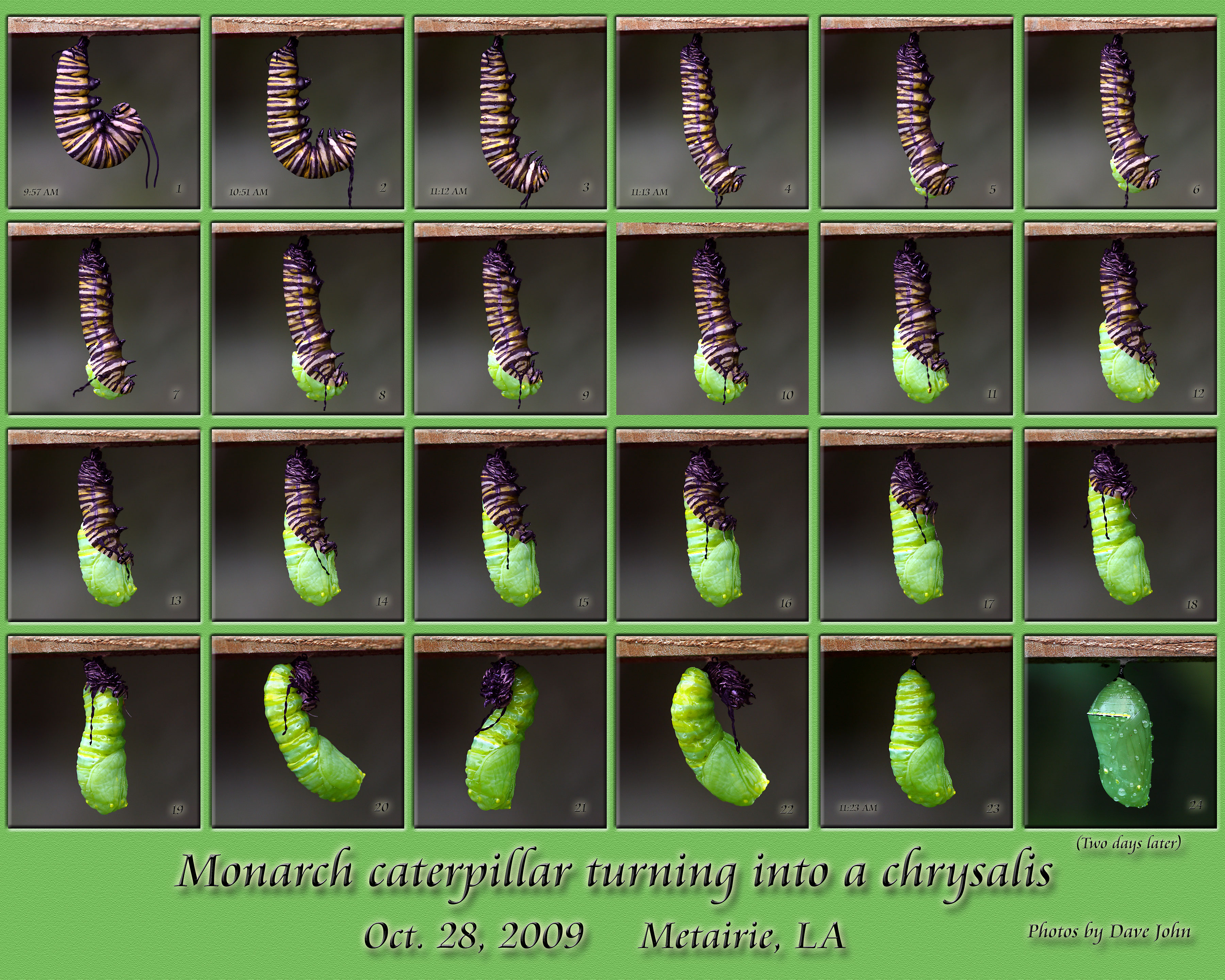 Monarch caterpillar turning into a chrysalis in Metairie, LA