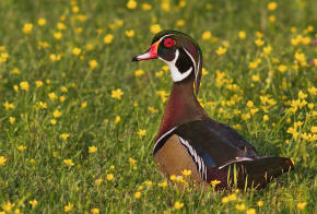 ![]() 14 Daddy Wood Duck watching his family from a distance |