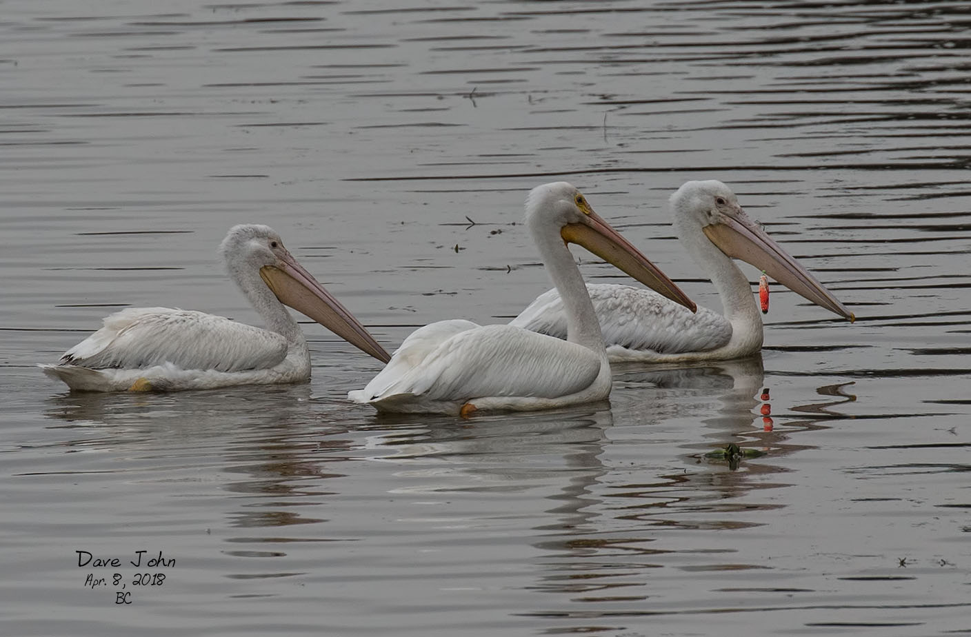 ![]() 11 White Pelicans (notice the one with the fishing cork caught in his bill) |