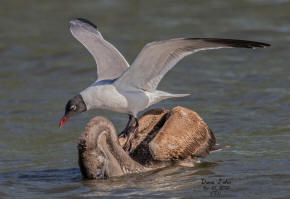 ![]() 41 Laughing Gull looking to steal some fish from a Brown Pelican |