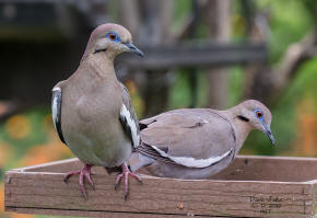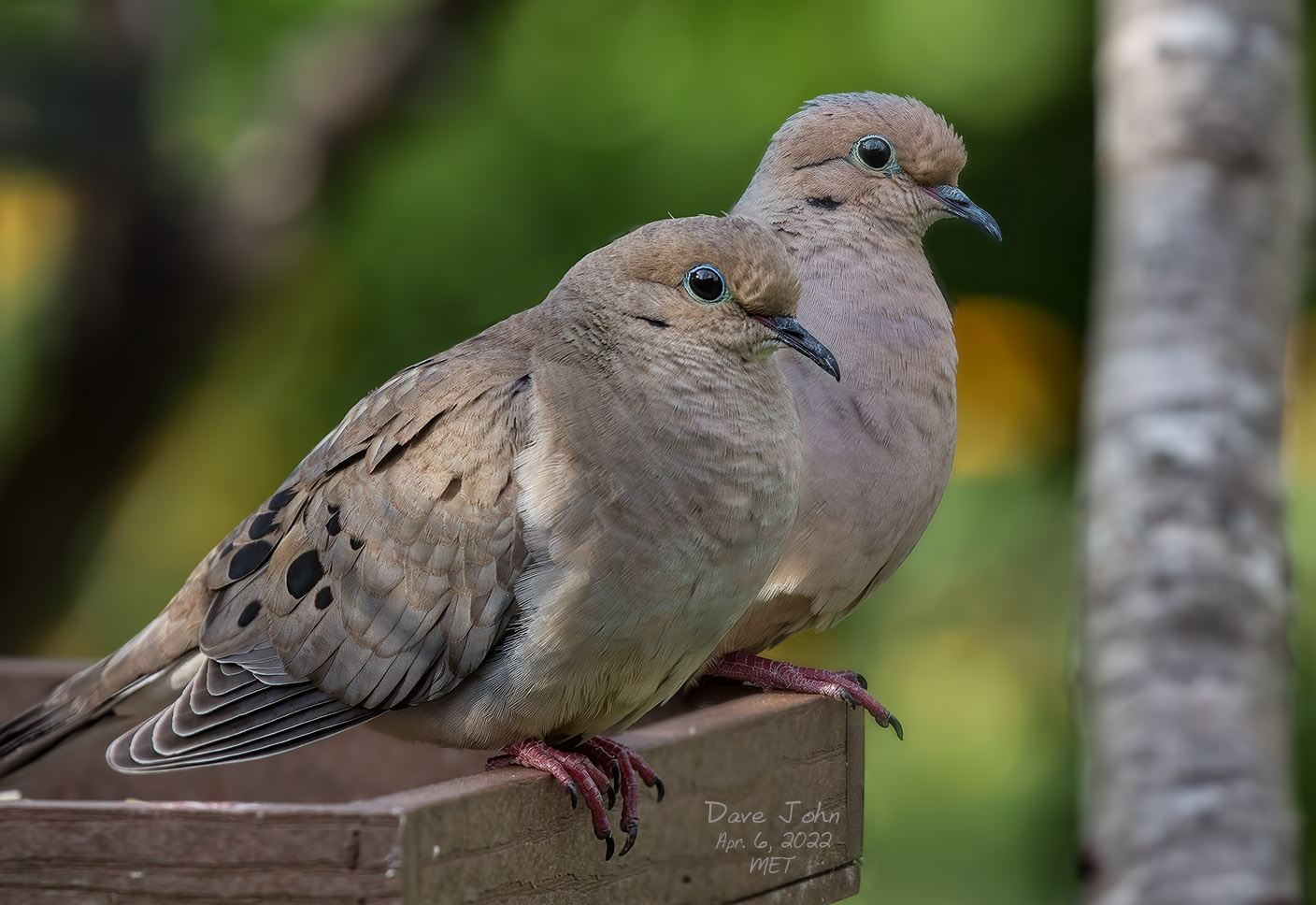 ![]() 8 Mourning Dove pair (manual focus stacking combining parts of two photos with different focus points which allows both doves to be in focus) |