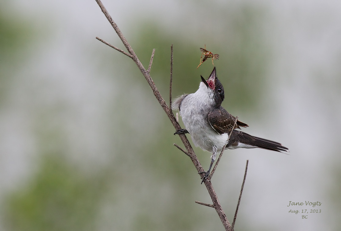 ![]() 3 Eastern Kingbird with a newly-caught wasp |