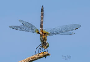 ![]() 22 Female Blue Dasher oblesking (pointing her abdomen towards the sun thought to reduce exposure to the sun during hot weather) |