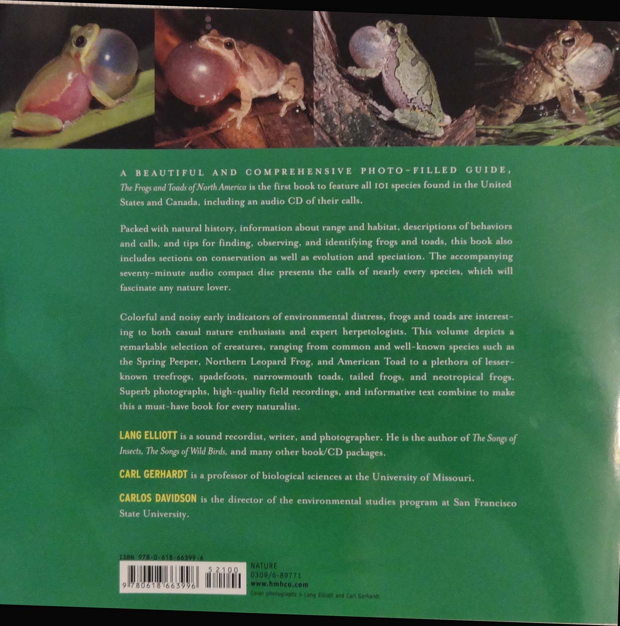 This is a beautiful and comprehensive guide to 101 species found in the United States and Canada. The photos are simply superb. Packed with information about range, distribution, voice, behavior and natural history, it also includes tips on finding, observing and identifying frogs and toads. An audio CD identifies and presents the actual calls of nearly every species.