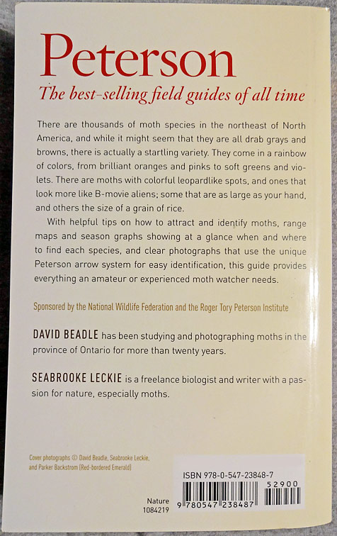 Peterson Field guide to Moths of Northeastern North America. By David Beadle and Seabrooke Leekie. Published by Houghton Mifflin Harcourt Publishing Company, New York, New York. Copyright 2012.
