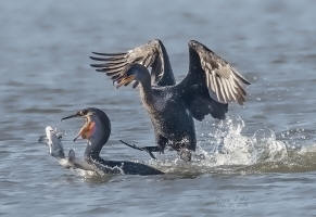 ![]() 44 Double-crested Cormorants fighting over a big fish. |