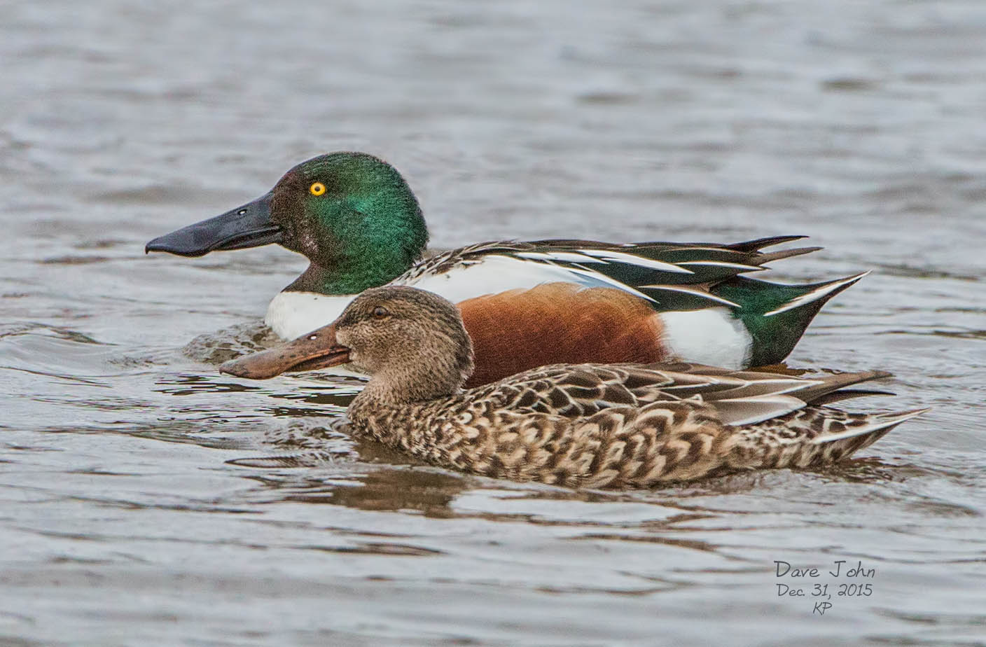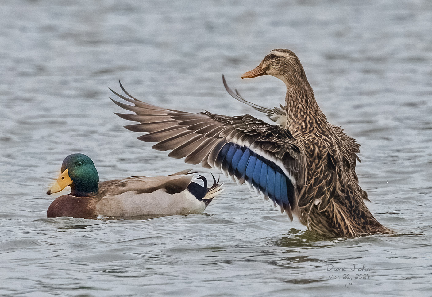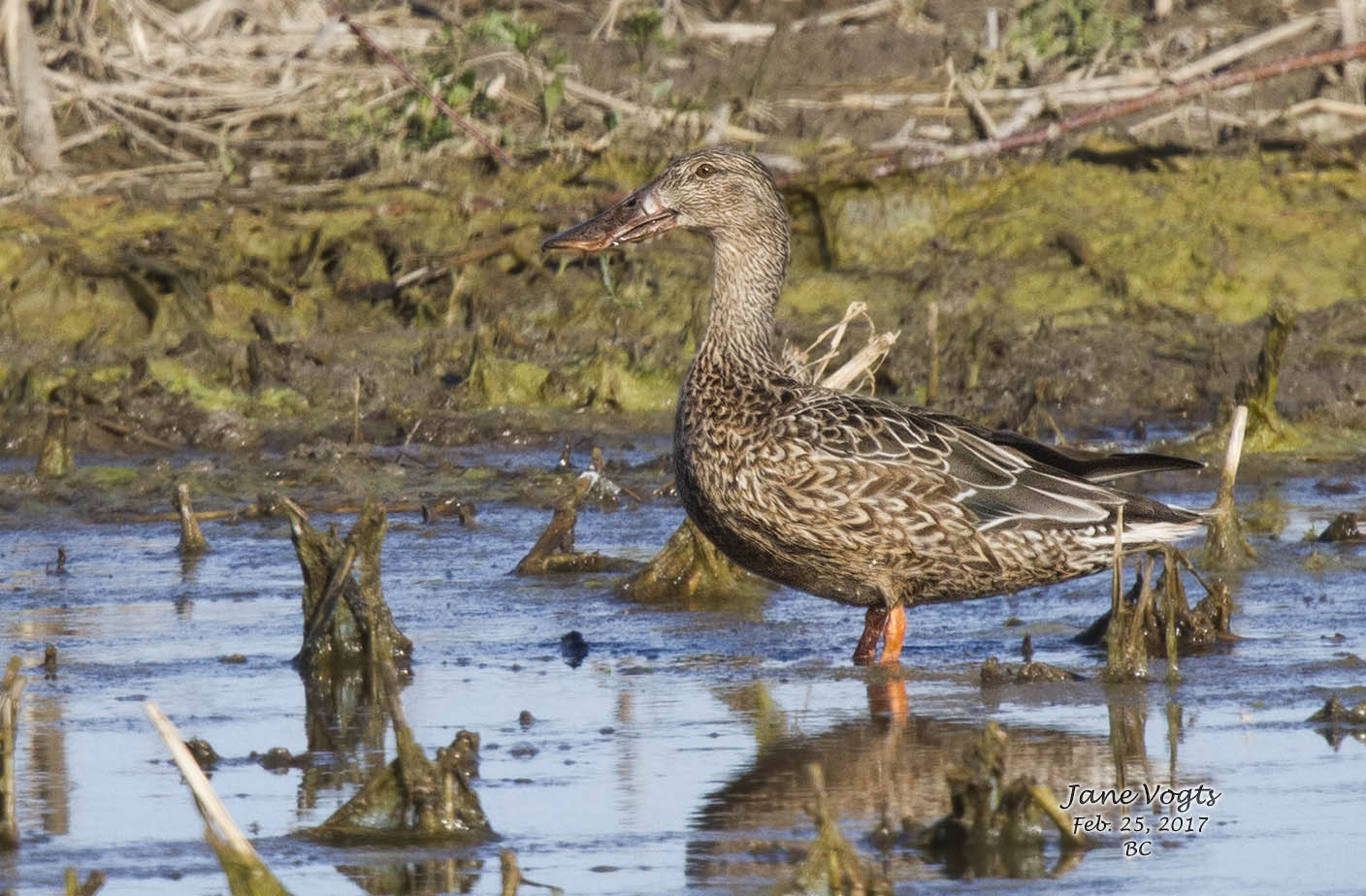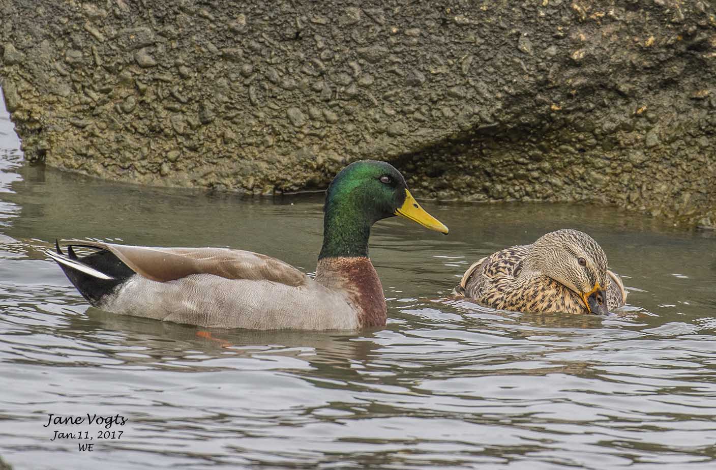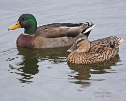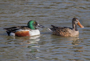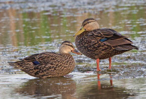 Mottled Ducks (hen w/orange bill and drake with yellowish bill) |