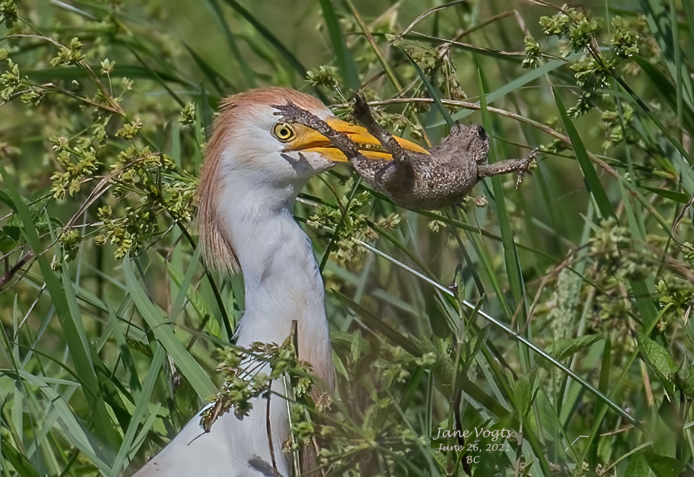 A rare color variation of a normally white Cattle Egret |