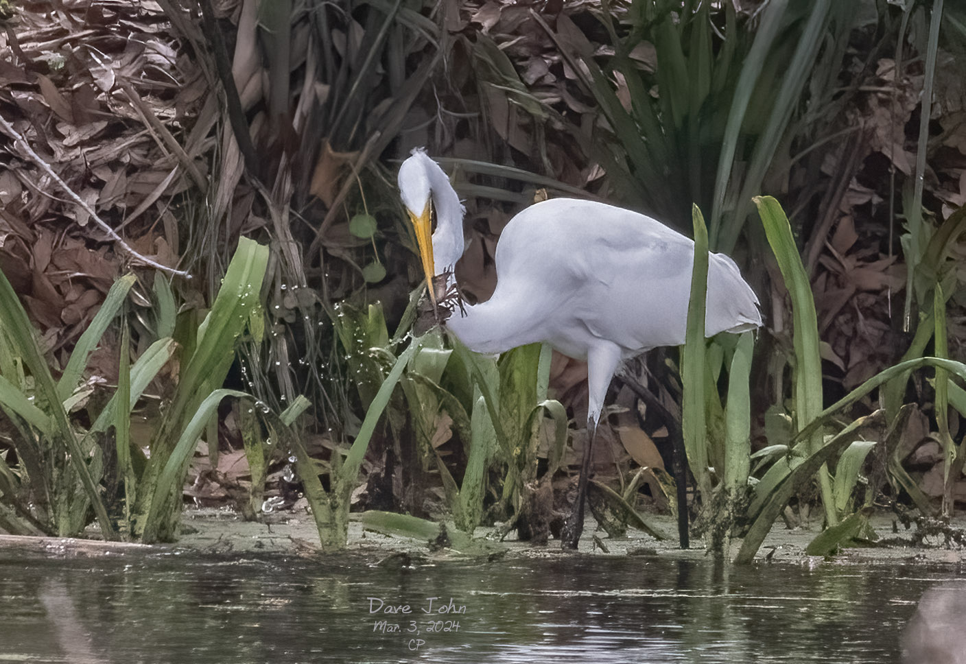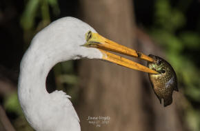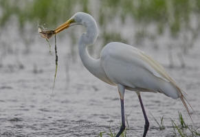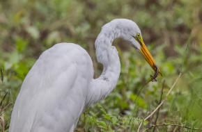 Great Egret with a newly-caught shrimp |