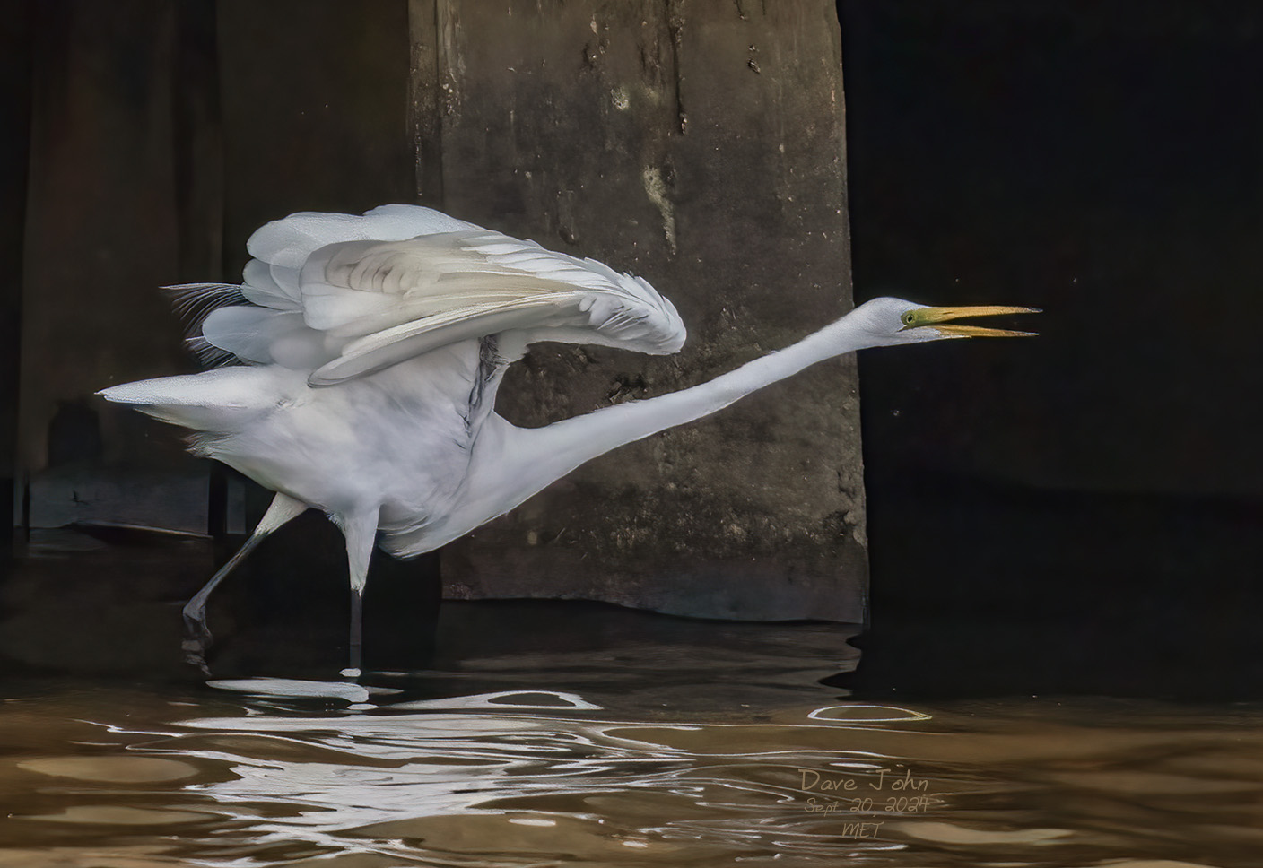 Great Egret yawning |