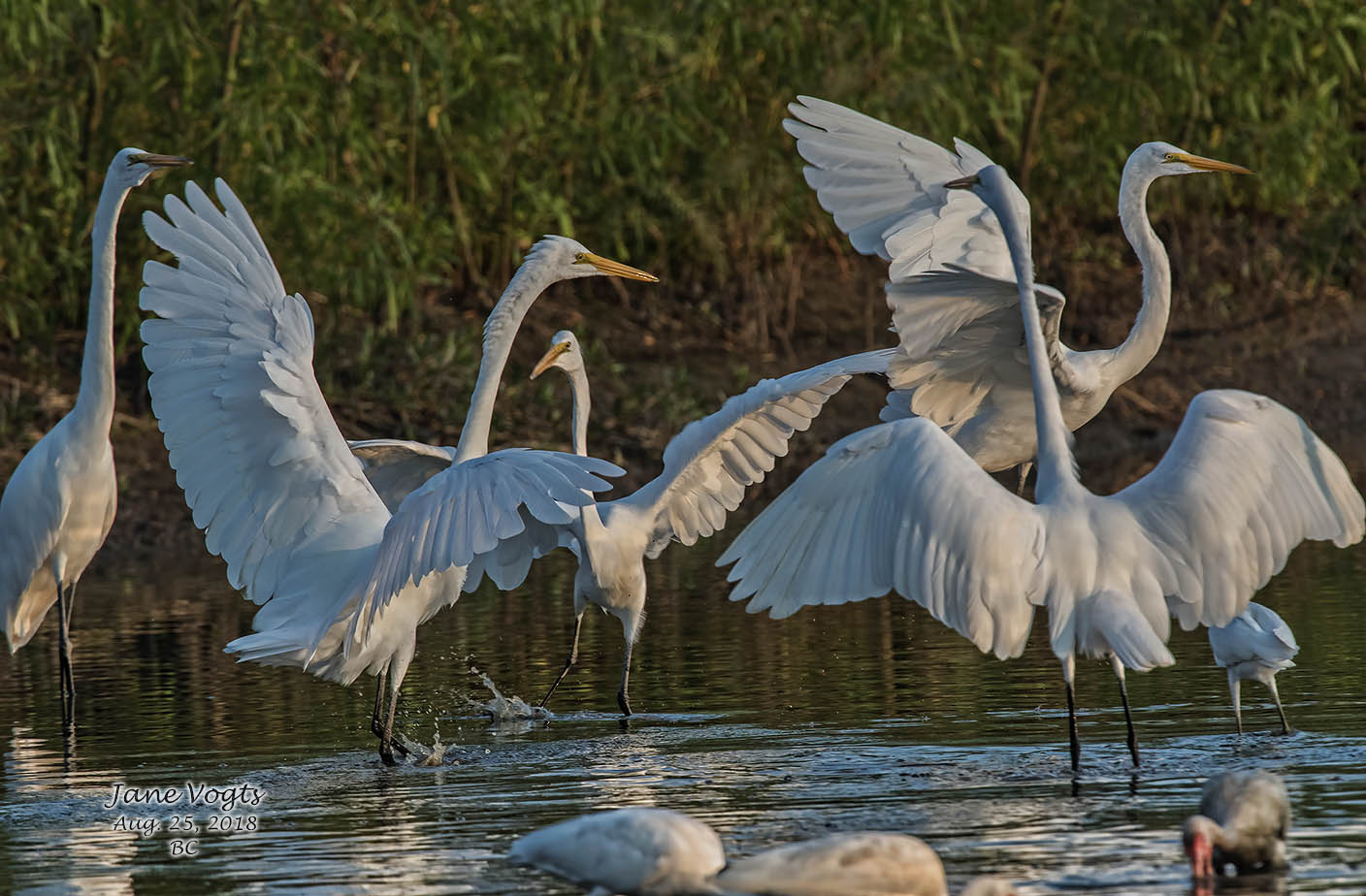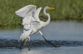 Great Egrets squabbling at the fishing hole |