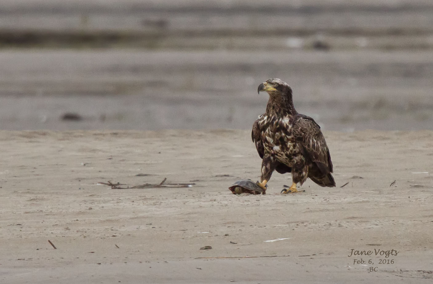 ![]() 9 Immature Bald Eagle with a stranded turtle--over 200 yards away |