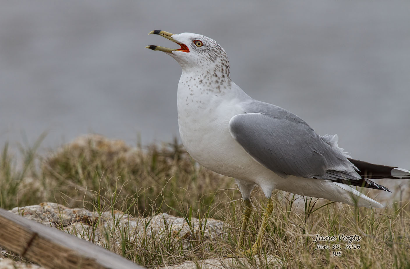 Ring-billed Gull sampling Chinese Tallow Tree seeds |
