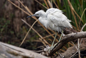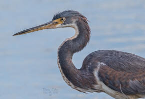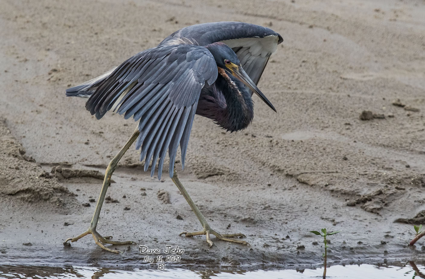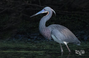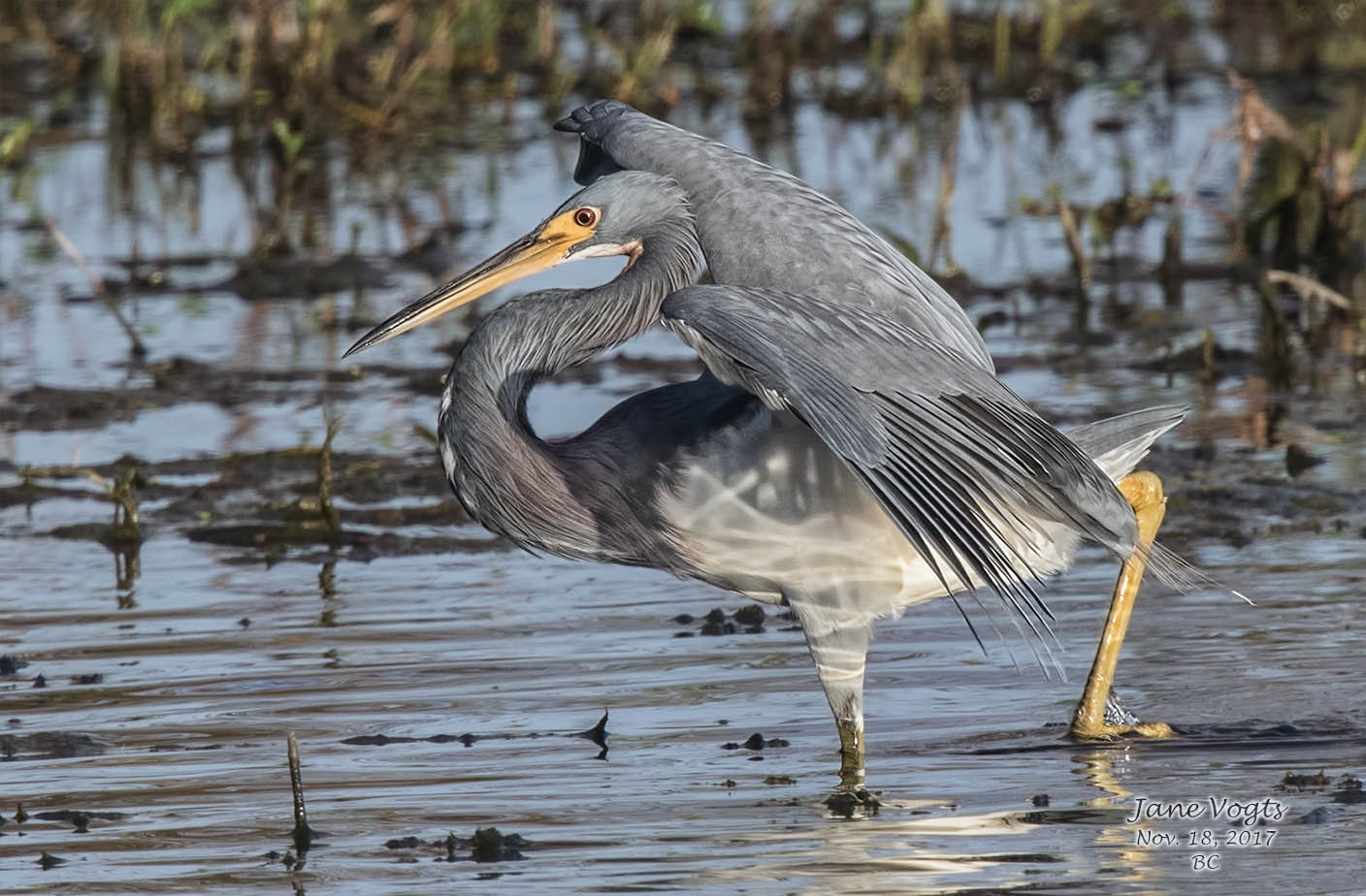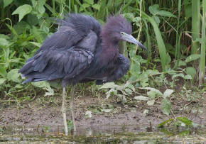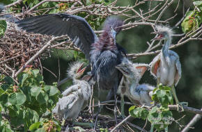 Tricolored Heron keeping Cattle Egrets away from her chick (seen peeping