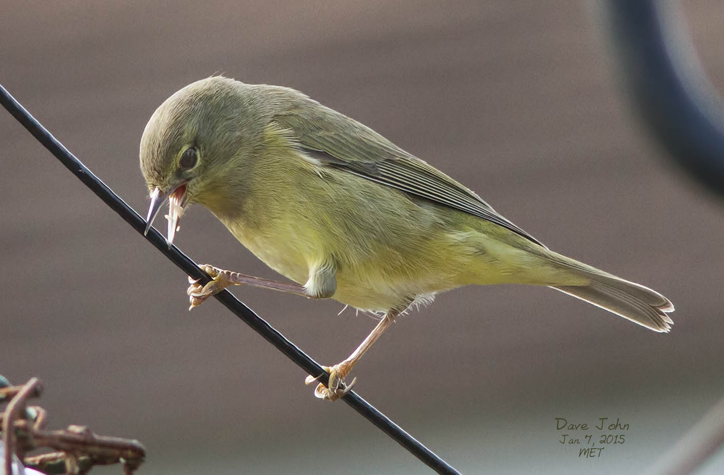 ![]() 3 Orange-crowned Warbler cleaning its bill |