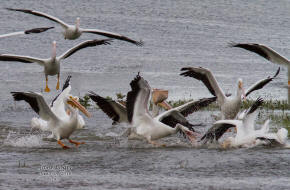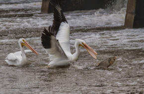 ![]() 16 White Pelican at the Bonnet Carre Spillway lunges for a carp. The fish got away. |