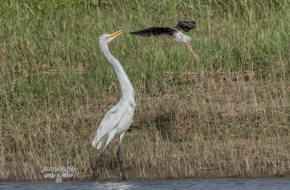 ![]() 14 Black-necked Stilt attacking a Great Egret (194 yards) |