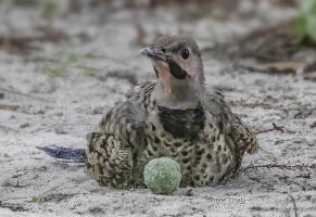 ![]() 16 Male Northern Flicker sand bathing in front of a cypress ball |