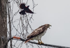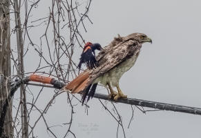 ![]() 2 Red-winged Blackbird striking a Red-tailed Hawk |