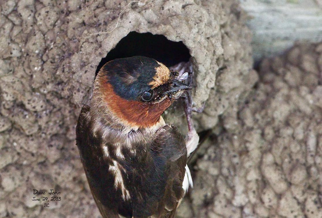 ![]() 28 Cliff Swallow picking up a mud pellet for nest building |