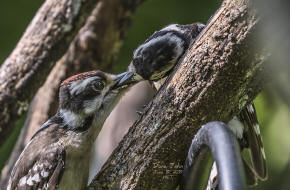 ![]() 4 Downy Woodpeckers (mama on right feeding her little boy) |