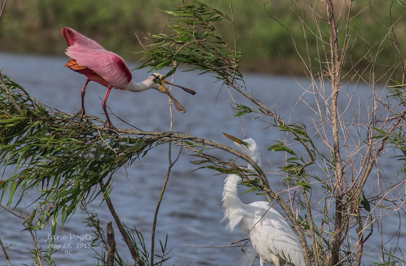 ![]() 54 Roseate Spoonbill squabbling with Great Egret |