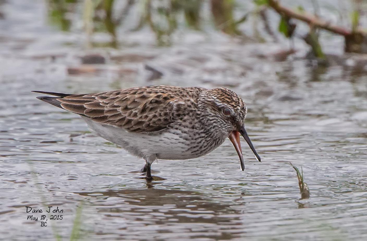 ![]() 40 Likely a White-rumped Sandpiper (has black legs and a small reddish area at the base of the lower bill) |