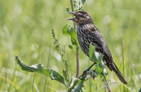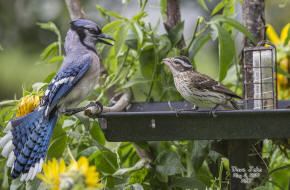 ![]() 2 Female Rose-breasted Grosbeak wants the feeder all to herself. |