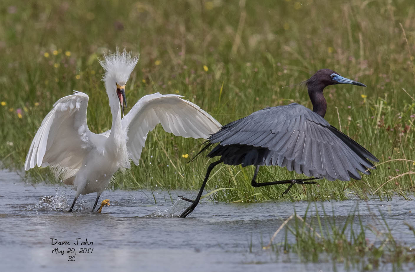 ![]() 42 Snowy Egret chasing a Little Blue Heron |