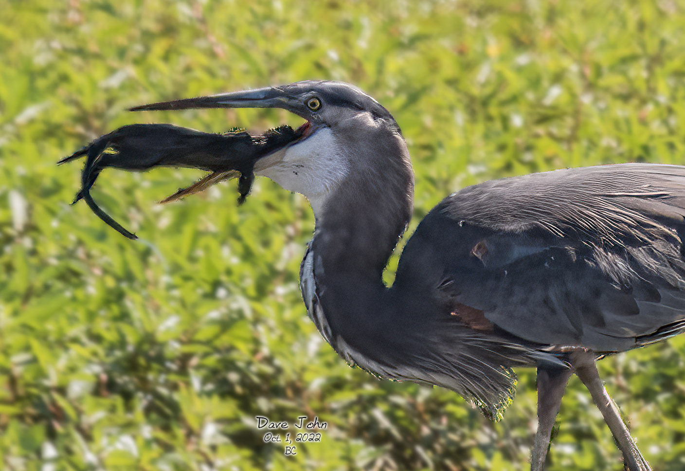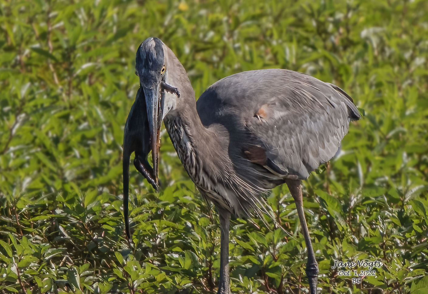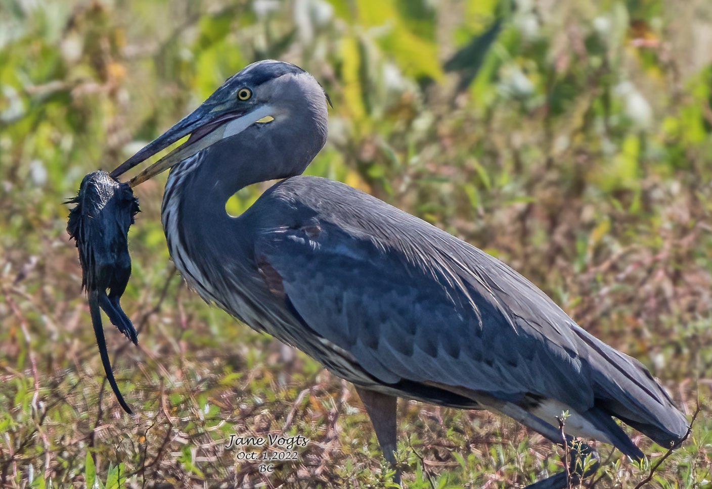 ![]() 1 Great Blue Heron with young nutria (~90 yds) |